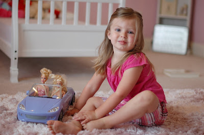 Mersadie loves Braden (most of the time). When he first came home and was pretty much immobile and non-expressive, she didn't care much for him. Now that he watches her and laughs at her silliness, she loves to entertain him. Sometimes her form of entertainment is not Braden's idea of fun. See example below: